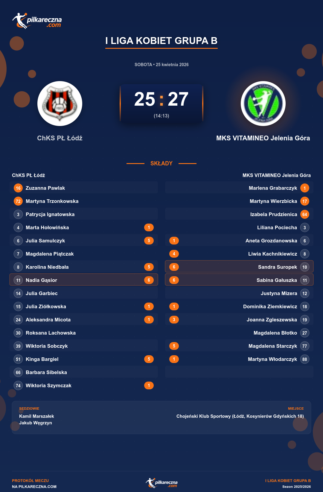 ChKS PŁ Łódź 25–27 MKS VITAMINEO Jelenia Góra
