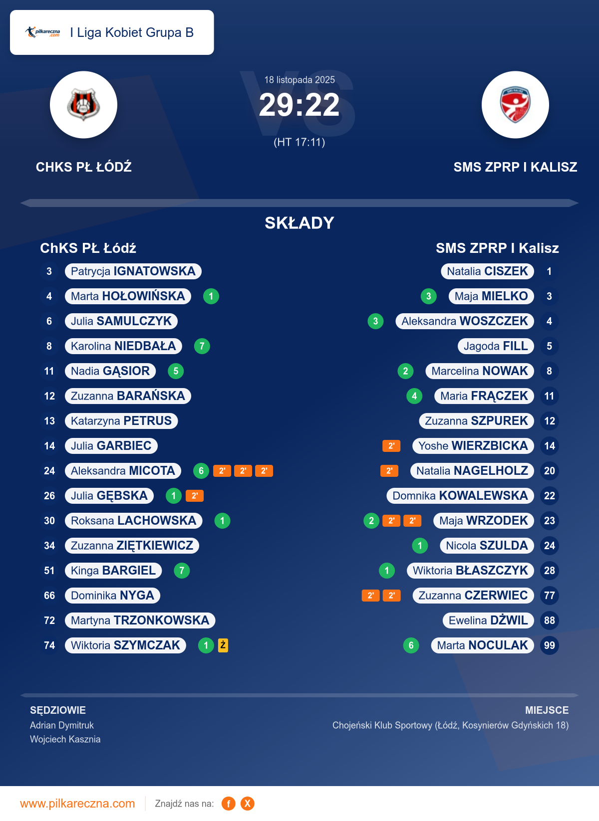 ChKS PŁ Łódź 29–22 SMS ZPRP I Kalisz