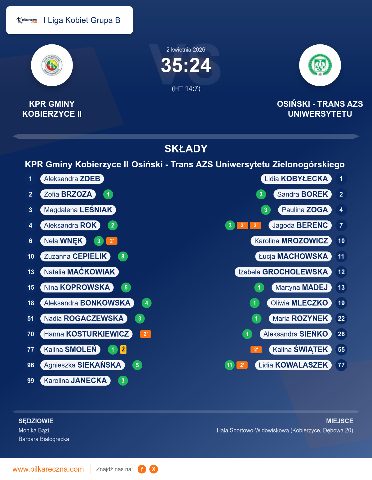 KPR Gminy Kobierzyce II 35–24 Osiński - Trans AZS Uniwersytetu Zielonogórskiego