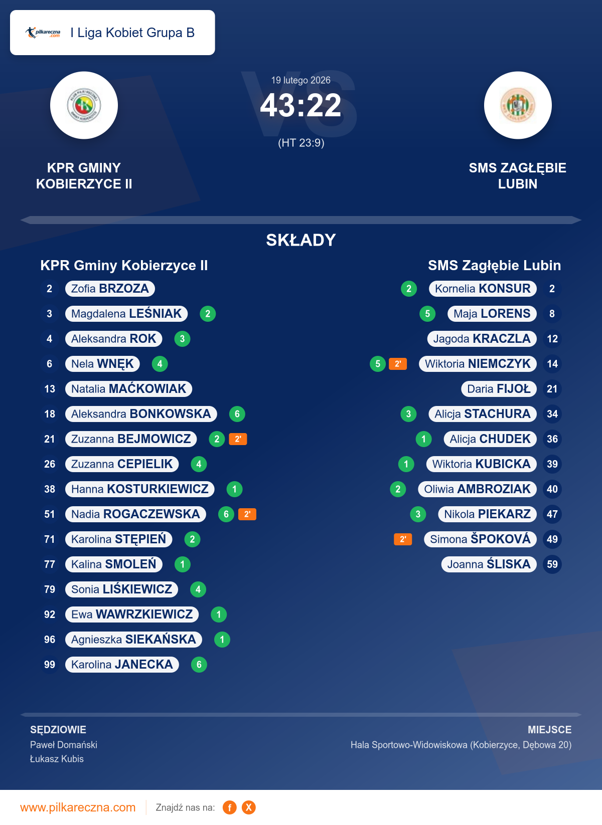 KPR Gminy Kobierzyce II 43–22 SMS Zagłębie Lubin