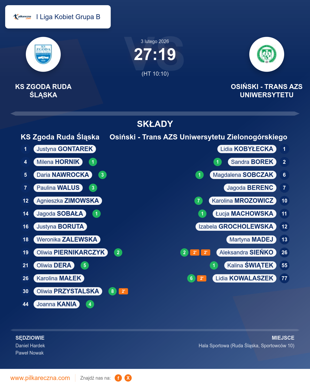 KS Zgoda Ruda Śląska 27–19 Osiński - Trans AZS Uniwersytetu Zielonogórskiego