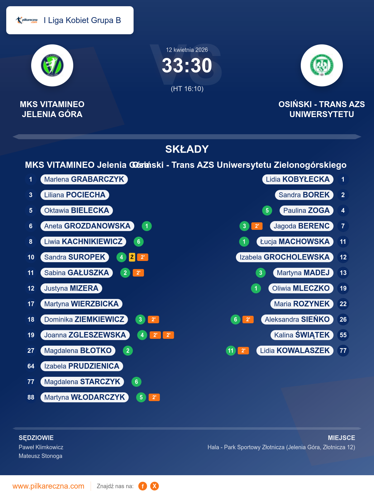MKS VITAMINEO Jelenia Góra — Osiński - Trans AZS Uniwersytetu Zielonogórskiego