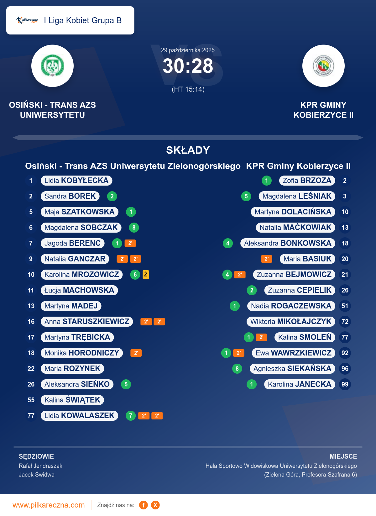 Osiński - Trans AZS Uniwersytetu Zielonogórskiego 30–28 KPR Gminy Kobierzyce II