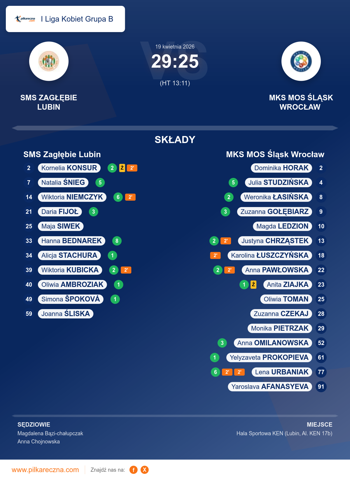 SMS Zagłębie Lubin 29–25 MKS MOS Śląsk Wrocław