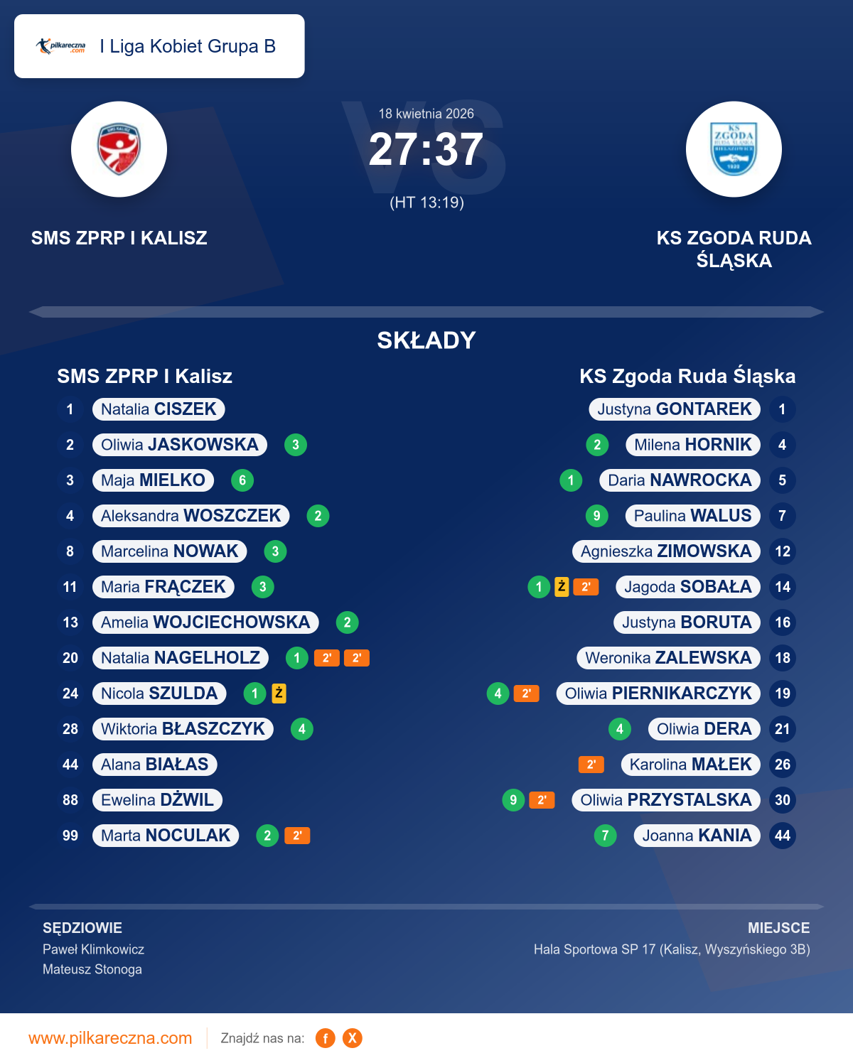 SMS ZPRP I Kalisz 27–37 KS Zgoda Ruda Śląska