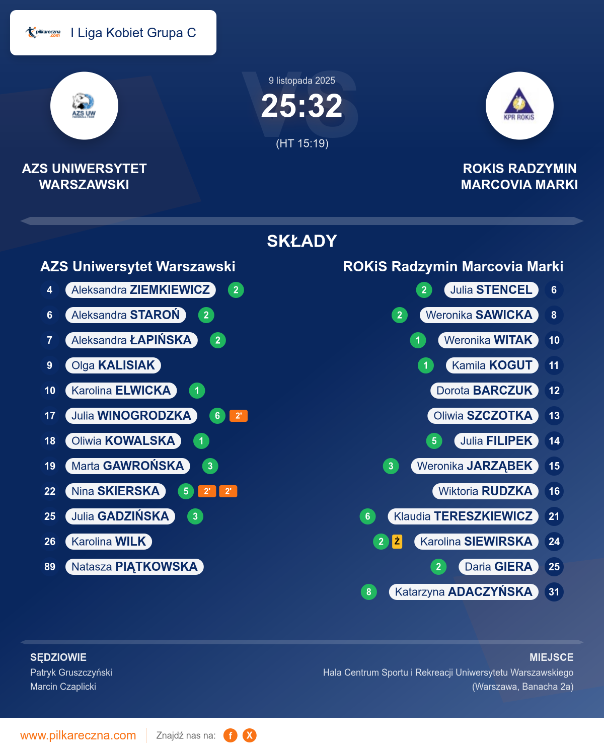 AZS Uniwersytet Warszawski 25–32 ROKiS Radzymin Marcovia Marki