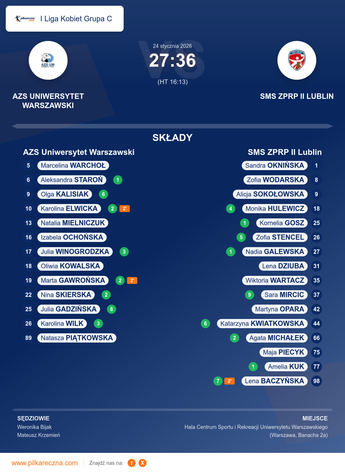 AZS Uniwersytet Warszawski 27–36 SMS ZPRP II Lublin