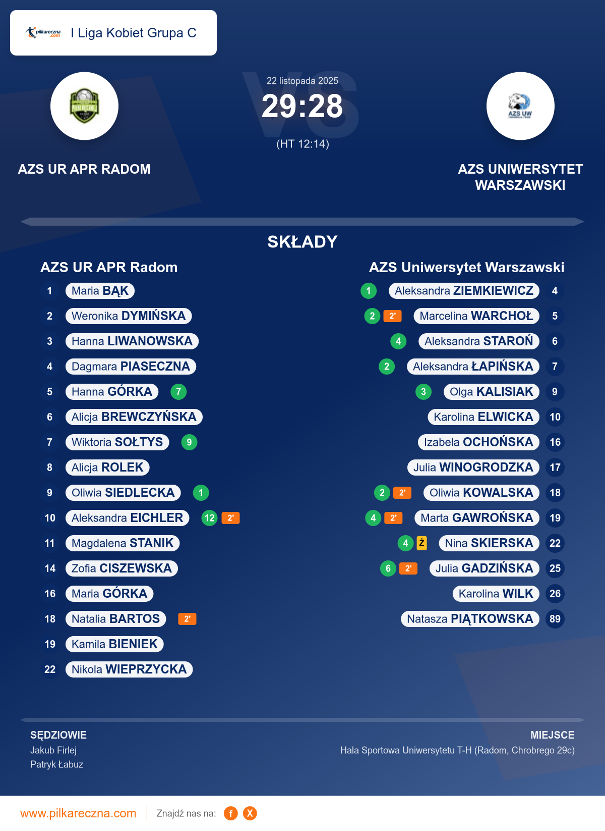 AZS UR APR Radom 29–28 AZS Uniwersytet Warszawski