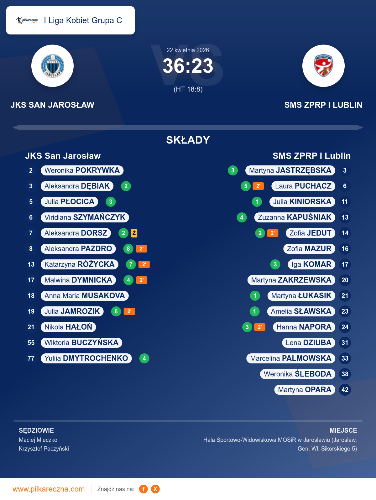 JKS San Jarosław 36–23 SMS ZPRP I Lublin
