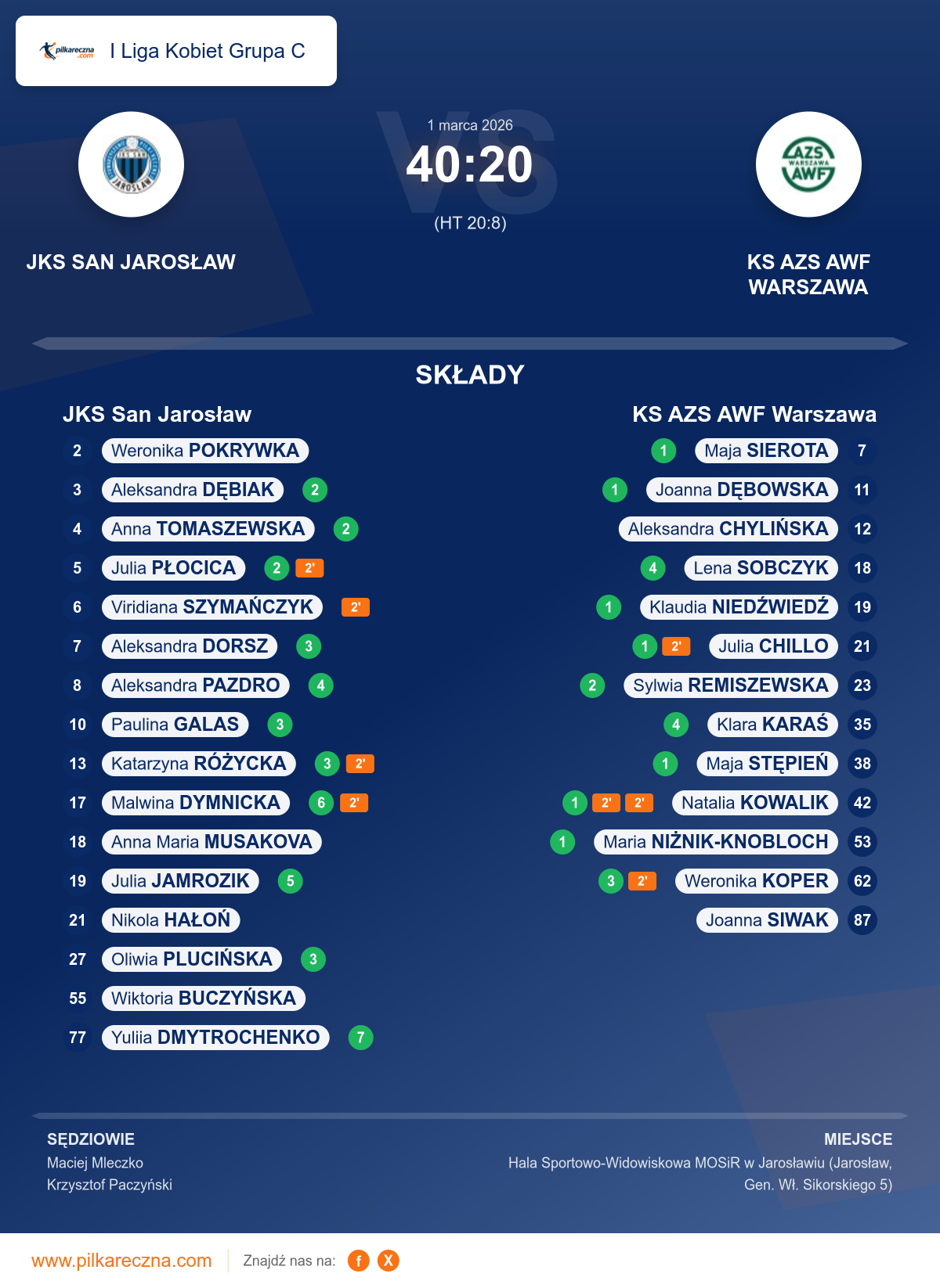 Wynik: 40–20 (HT 20–8)
