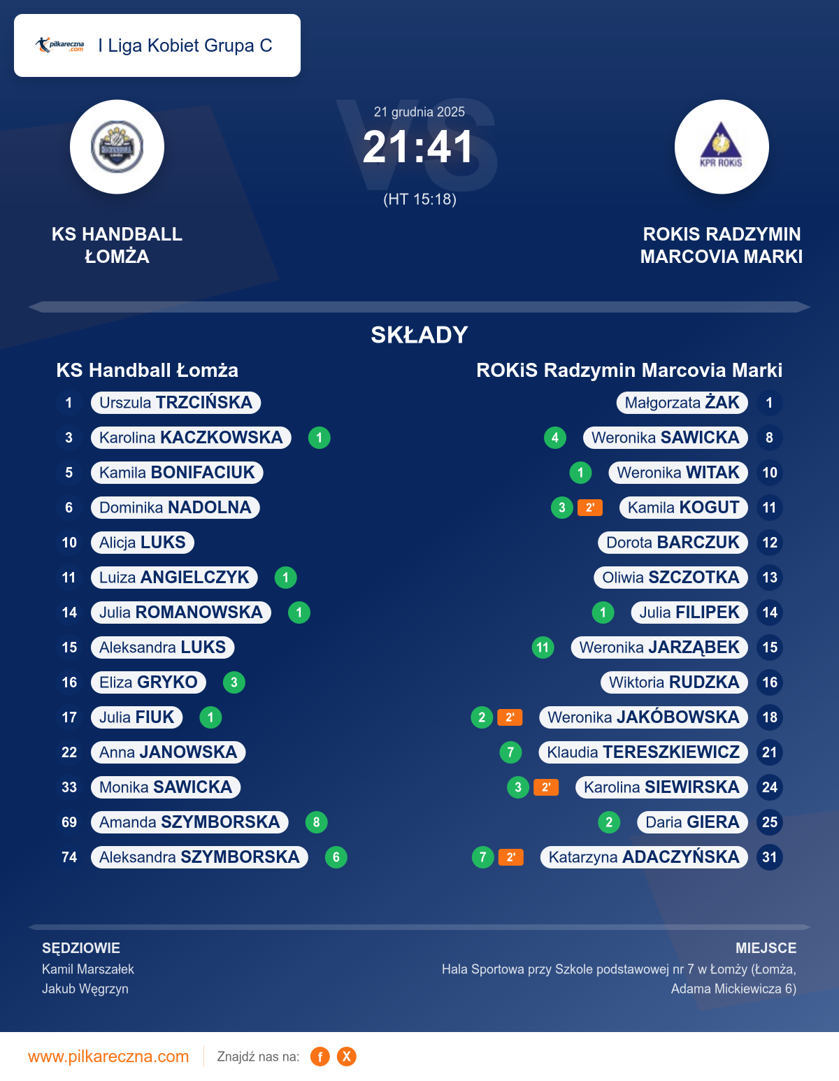 Sędziowali: Kamil Marszałek, Jakub Węgrzyn