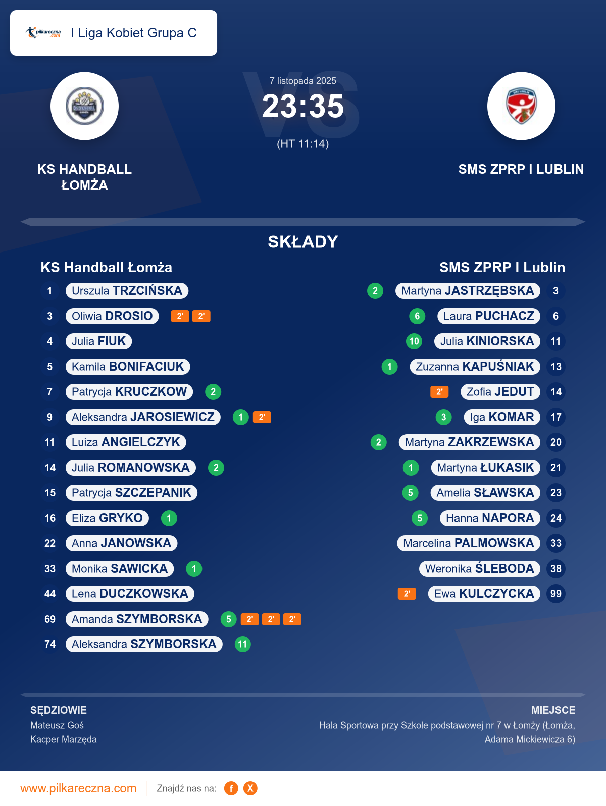 Sędziowali: Mateusz Goś, Kacper Marzęda