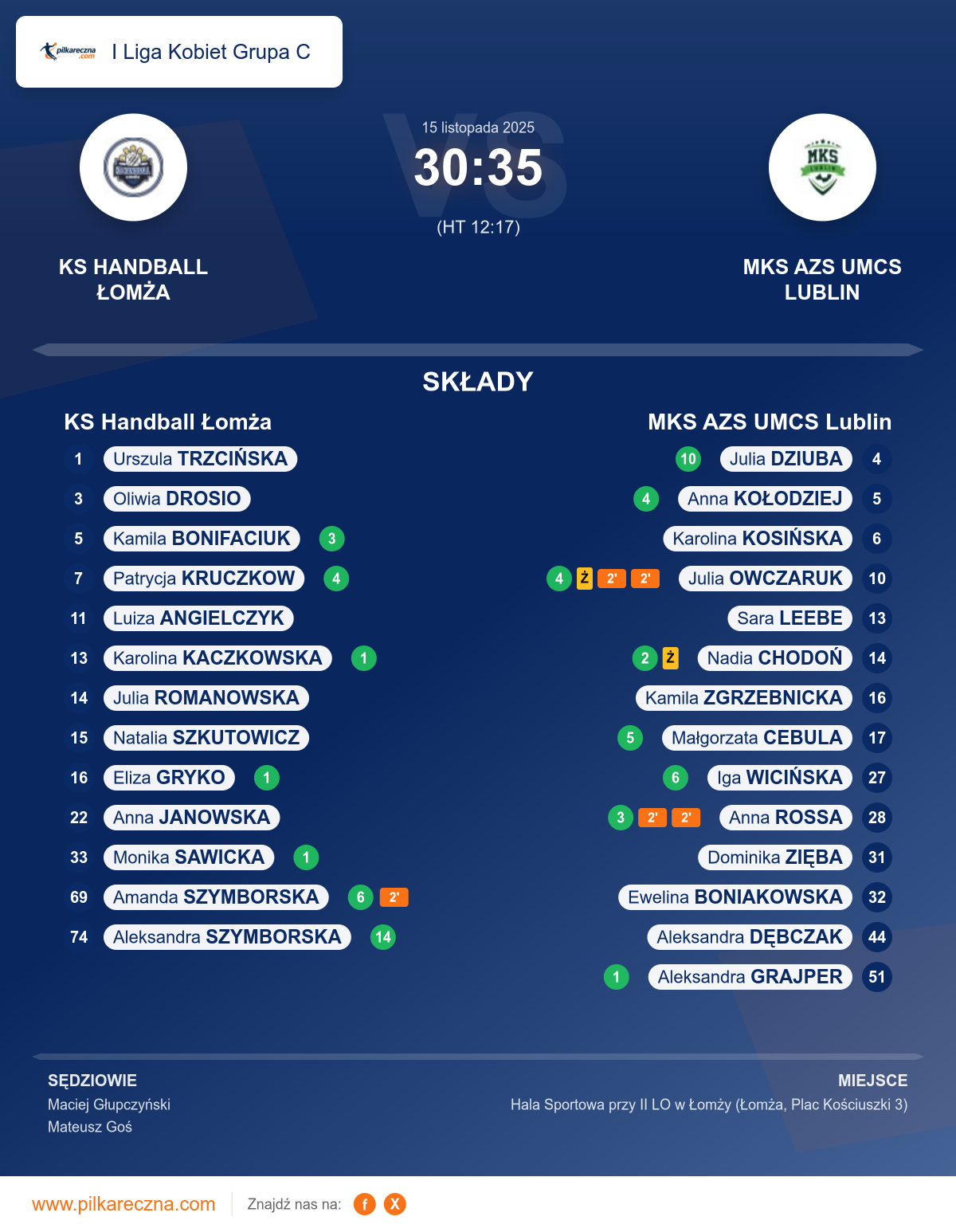 KS Handball Łomża 30–35 MKS AZS UMCS Lublin