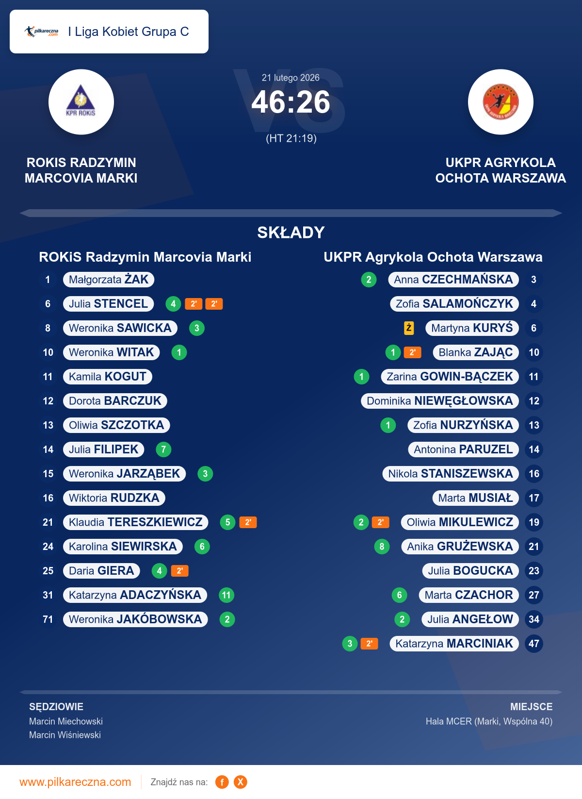 Wynik: 46–26 (HT 21–19)