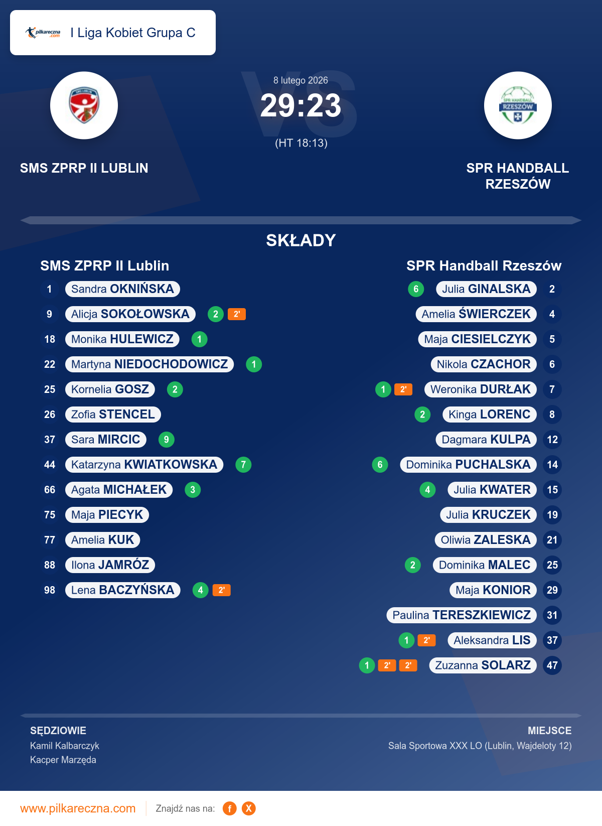 SMS ZPRP II Lublin 29–23 SPR Handball Rzeszów