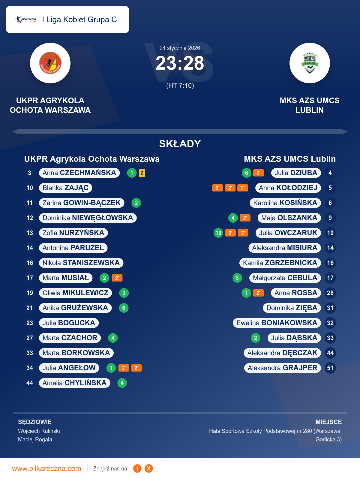 Uwagi: zawodniczka drużyny gości MKS AZS UMCS Lublin grająca z nr 28