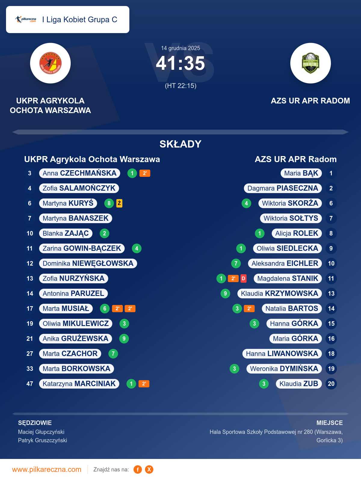 UKPR Agrykola Ochota Warszawa 41–35 AZS UR APR Radom