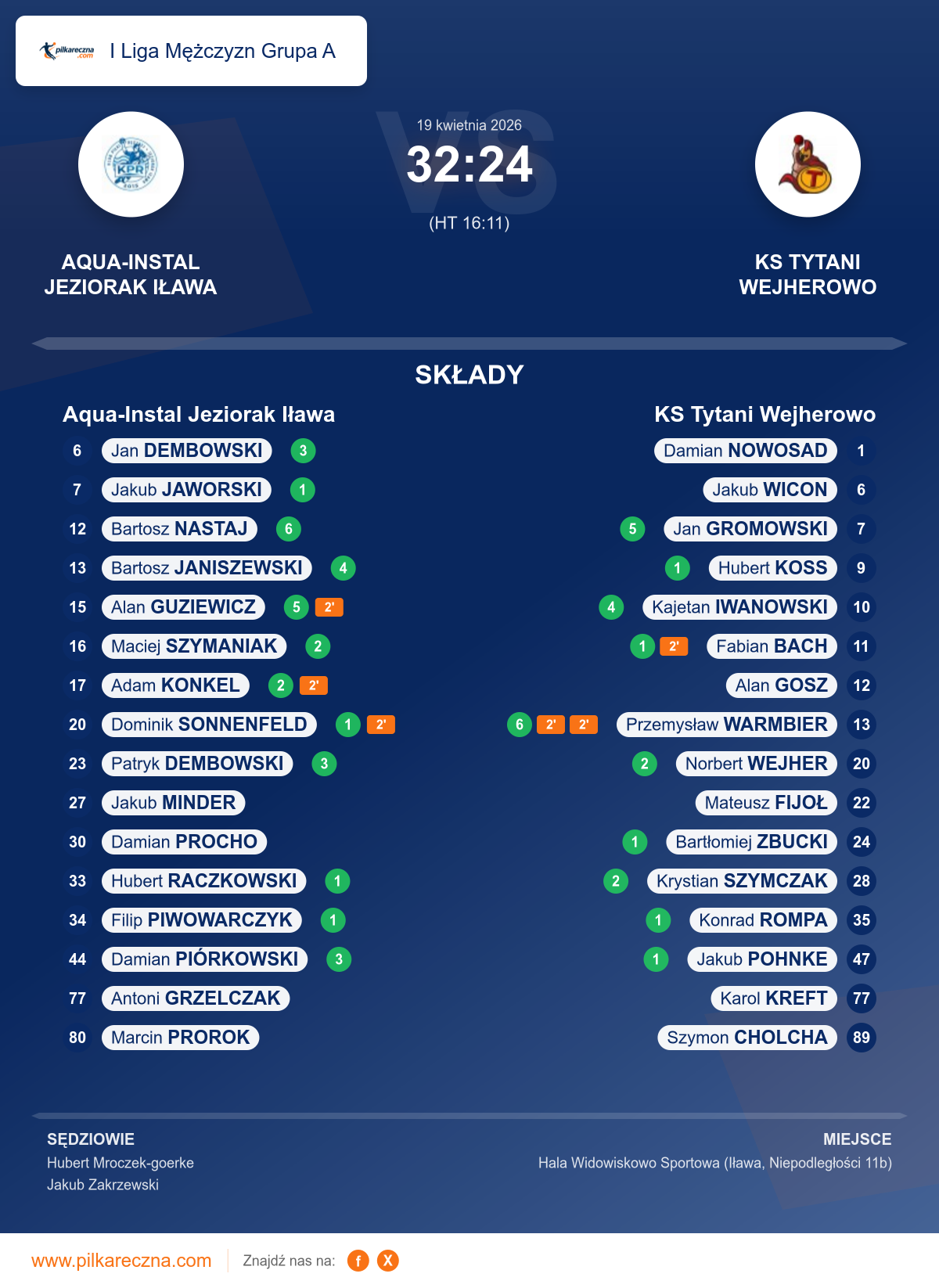 Aqua-Instal Jeziorak Iława 32–24 KS Tytani Wejherowo