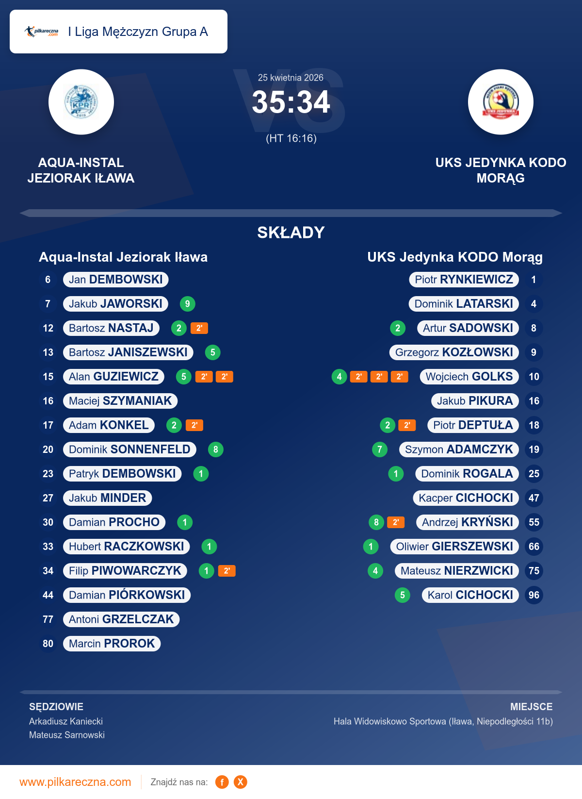 Sędziowali: Arkadiusz Kaniecki, Mateusz Sarnowski