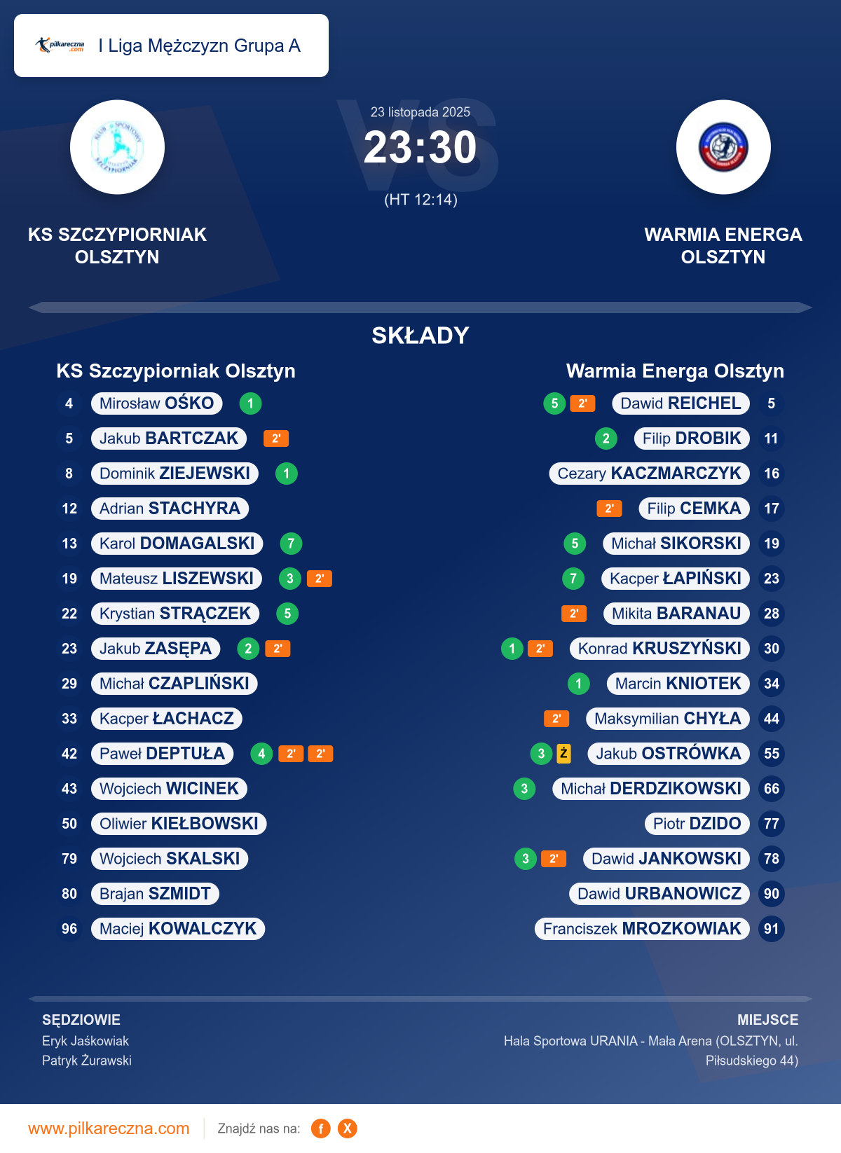 KS Szczypiorniak Olsztyn 23–30 Warmia Energa Olsztyn