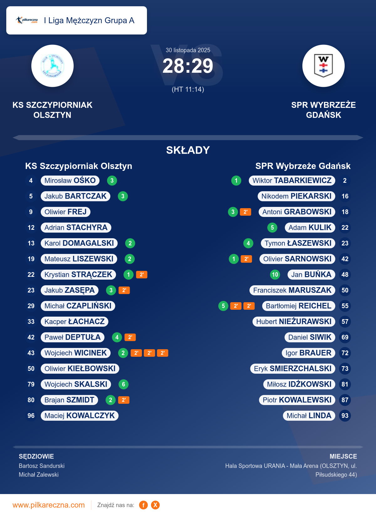 KS Szczypiorniak Olsztyn 28–29 SPR Wybrzeże Gdańsk