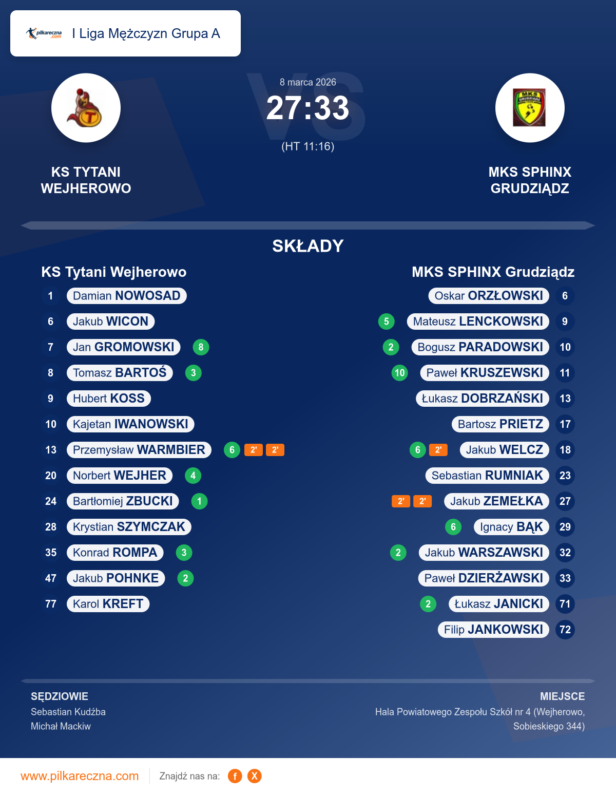 KS Tytani Wejherowo 27–33 MKS SPHINX Grudziądz