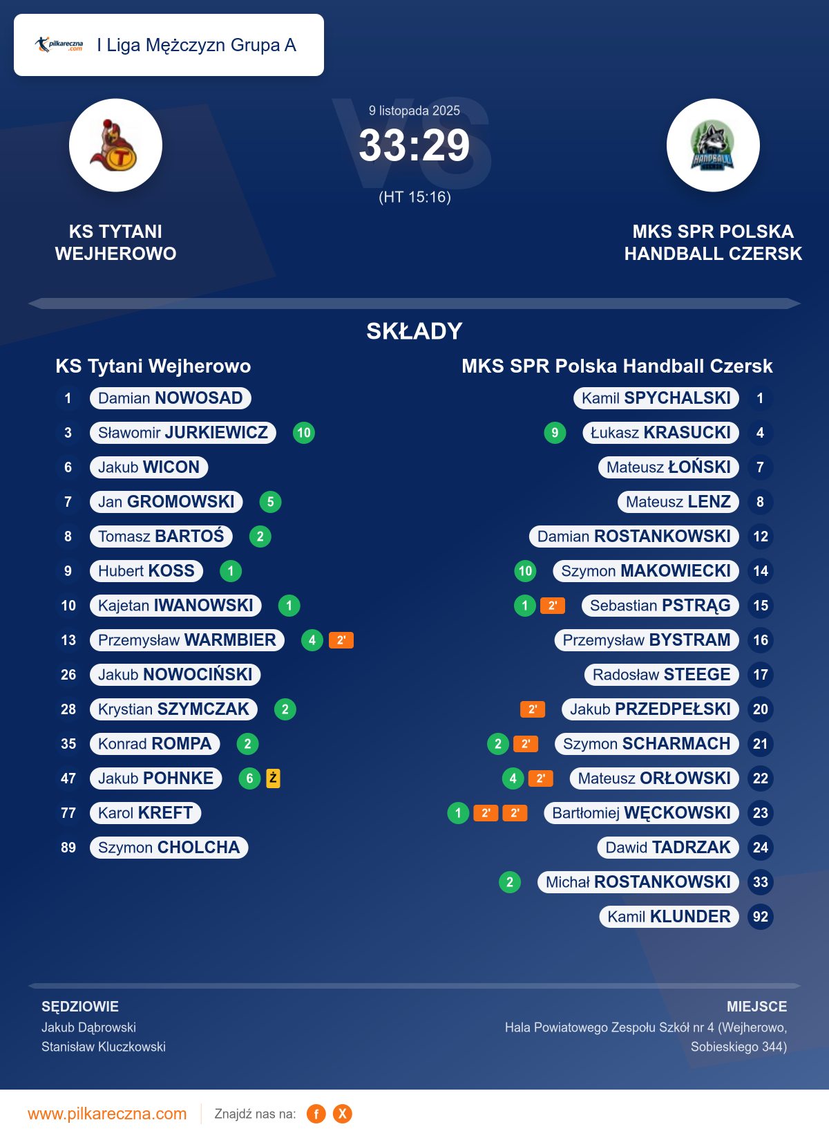 KS Tytani Wejherowo 33–29 MKS SPR Polska Handball Czersk