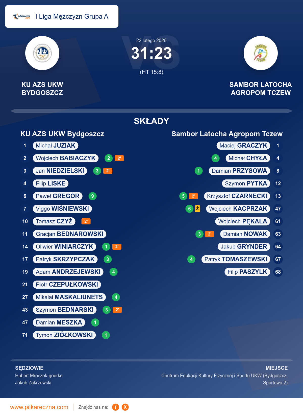 KU AZS UKW Bydgoszcz 31–23 Sambor Latocha Agropom Tczew