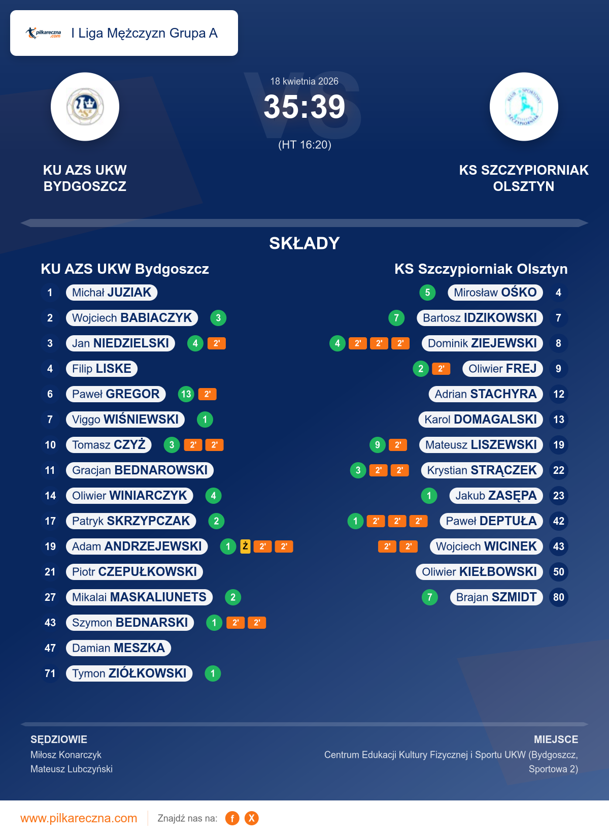 Sędziowali: Miłosz Konarczyk, Mateusz Lubczyński