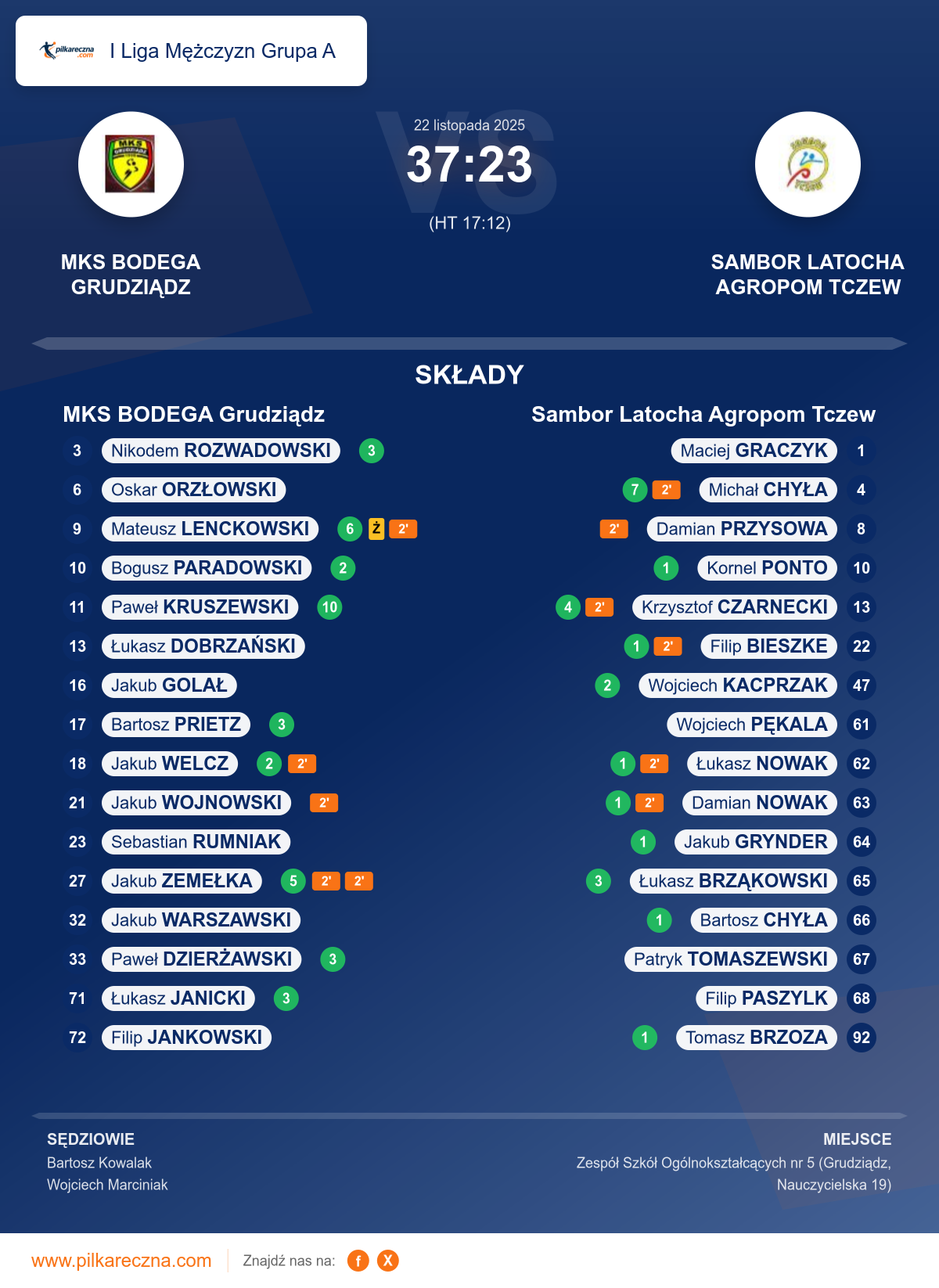 MKS BODEGA Grudziądz 37–23 Sambor Latocha Agropom Tczew