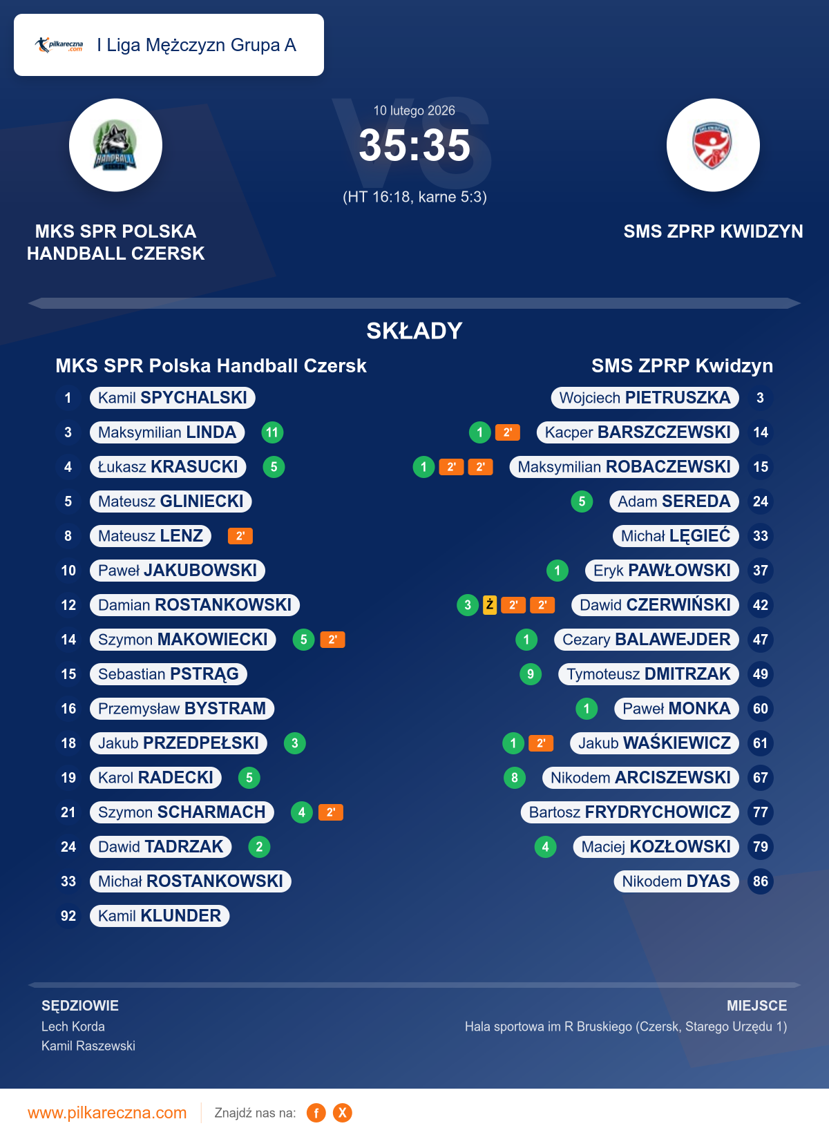Wynik: 35–35 (HT 16–18), po karnych 5–3
