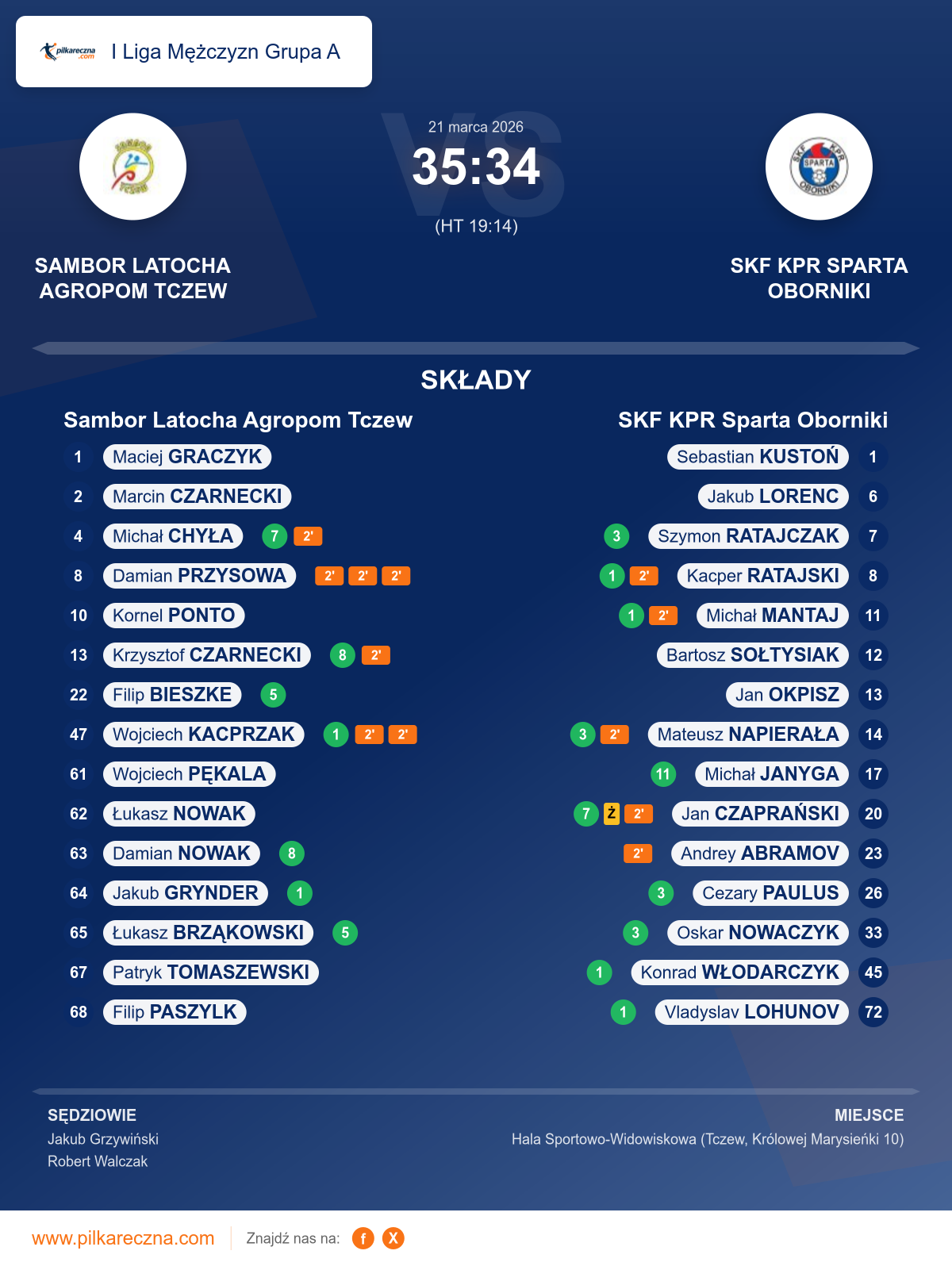 Sambor Latocha Agropom Tczew 35–34 SKF KPR Sparta Oborniki