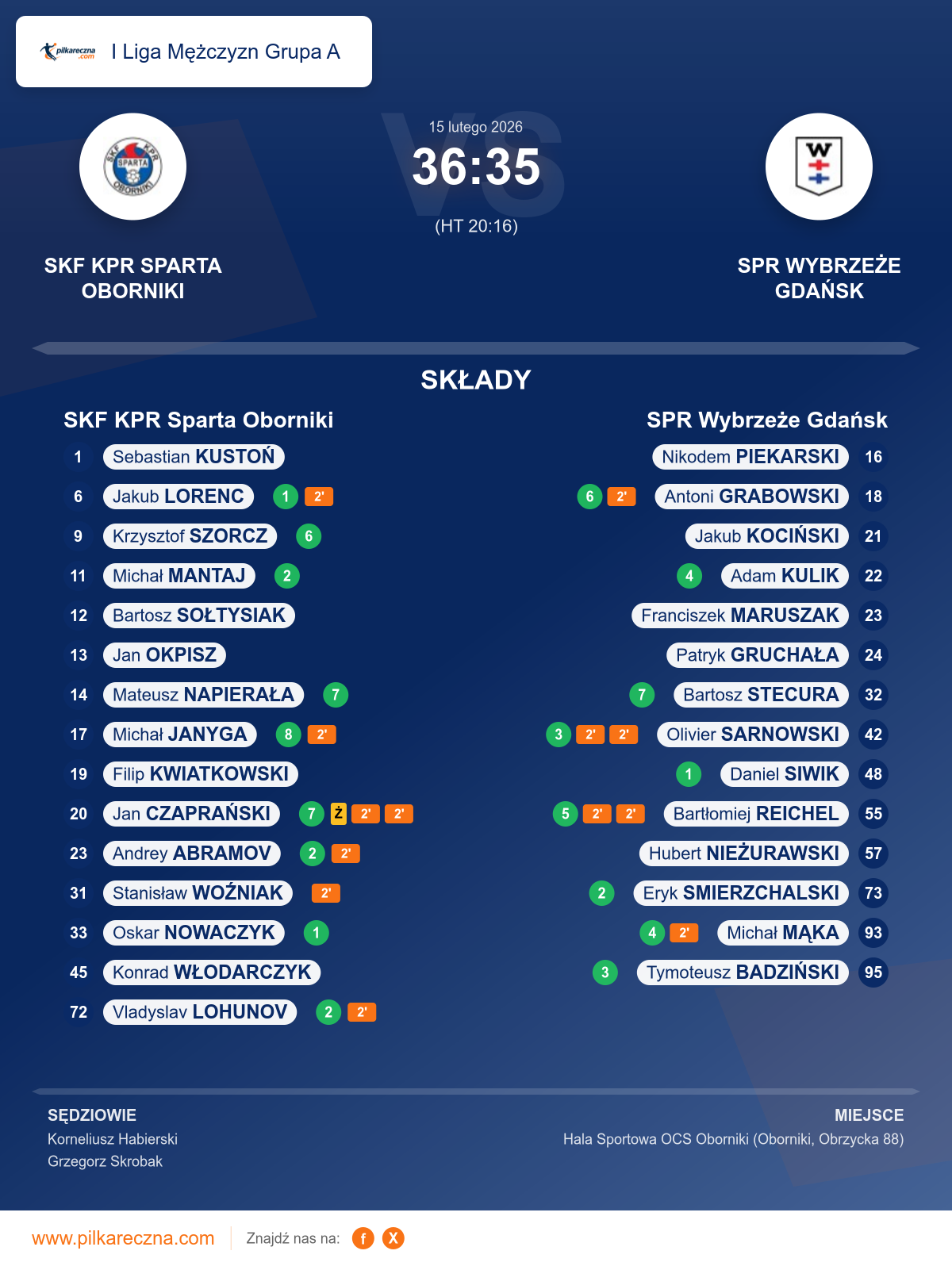 SKF KPR Sparta Oborniki 36–35 SPR Wybrzeże Gdańsk