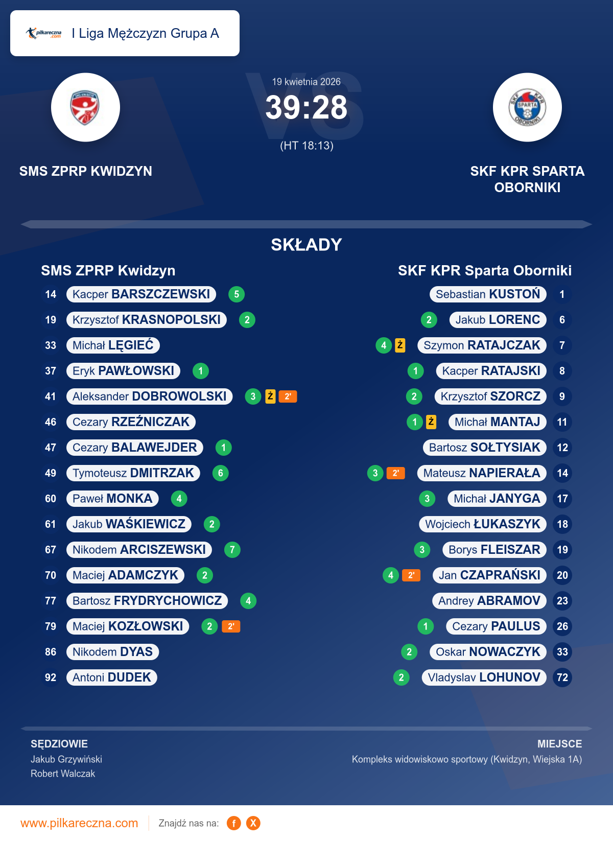 SMS ZPRP Kwidzyn 39–28 SKF KPR Sparta Oborniki