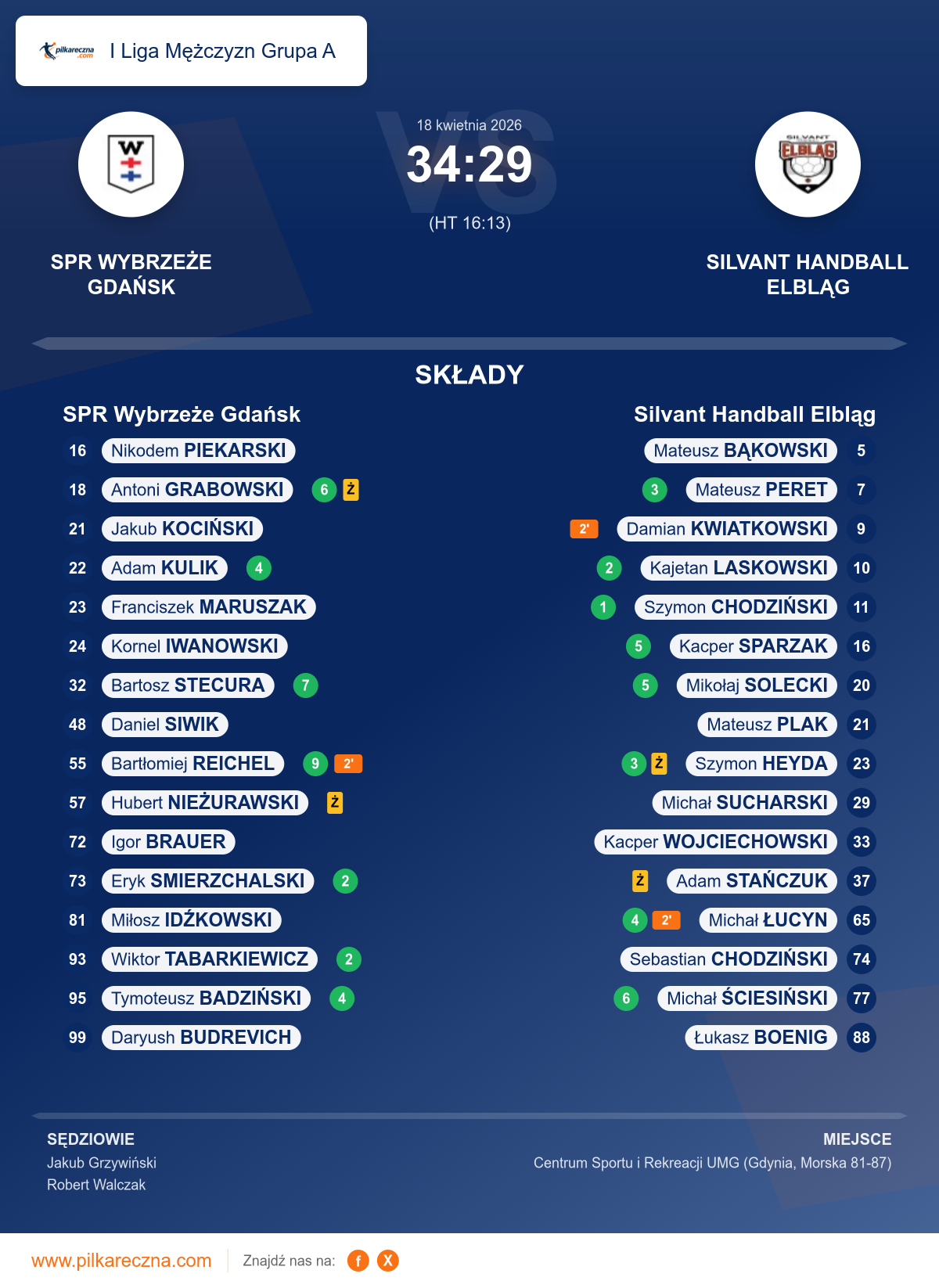 Sędziowali: Jakub Grzywiński, Robert Walczak