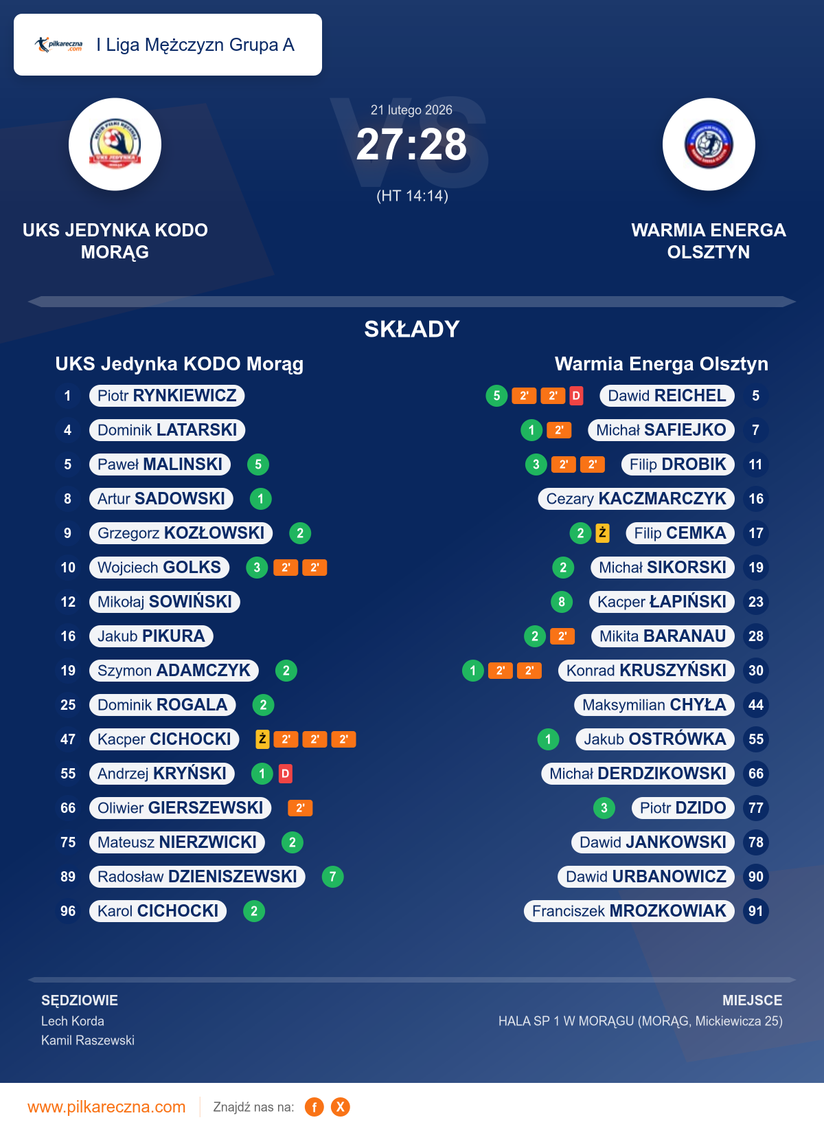 UKS Jedynka KODO Morąg 27–28 Warmia Energa Olsztyn