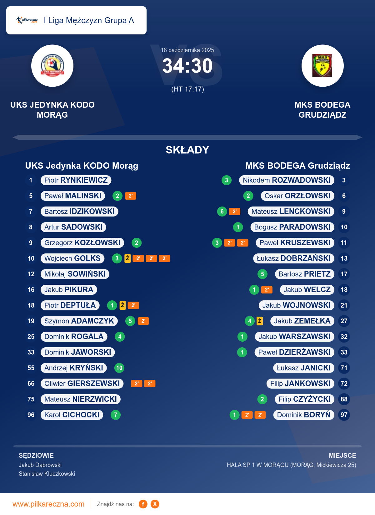 UKS Jedynka KODO Morąg 34–30 MKS BODEGA Grudziądz