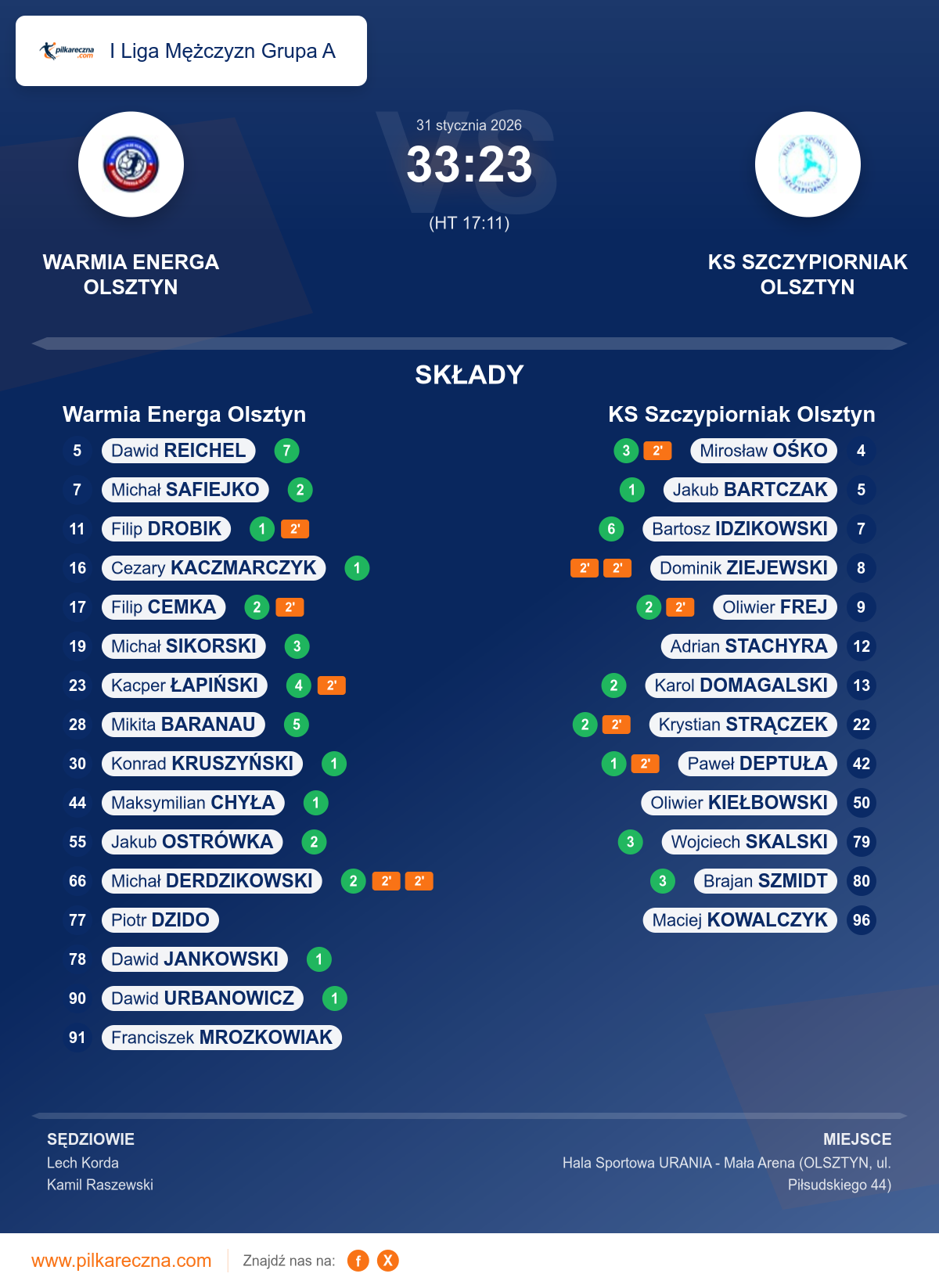 Warmia Energa Olsztyn 33–23 KS Szczypiorniak Olsztyn