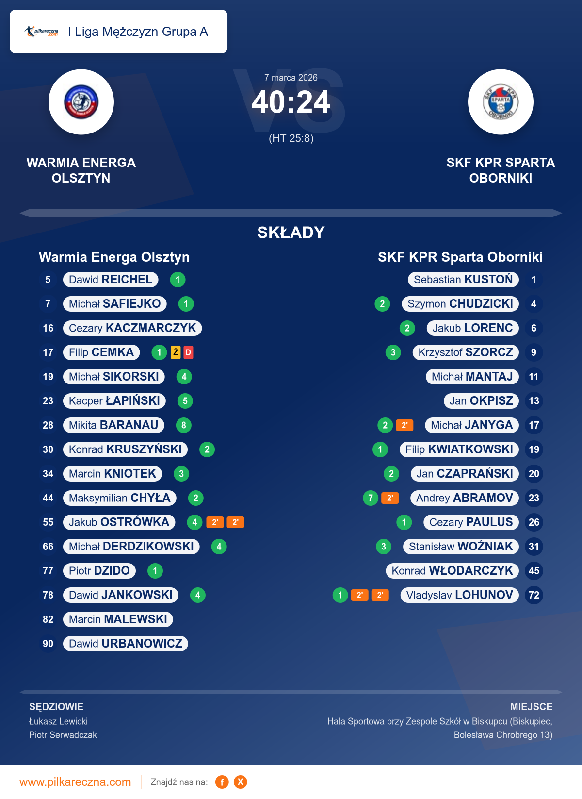 Warmia Energa Olsztyn 40–24 SKF KPR Sparta Oborniki