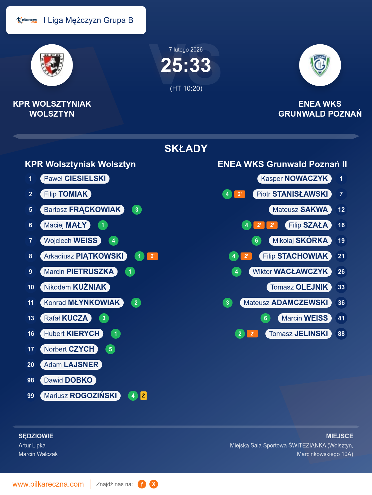 KPR Wolsztyniak Wolsztyn 25–33 ENEA WKS Grunwald Poznań II