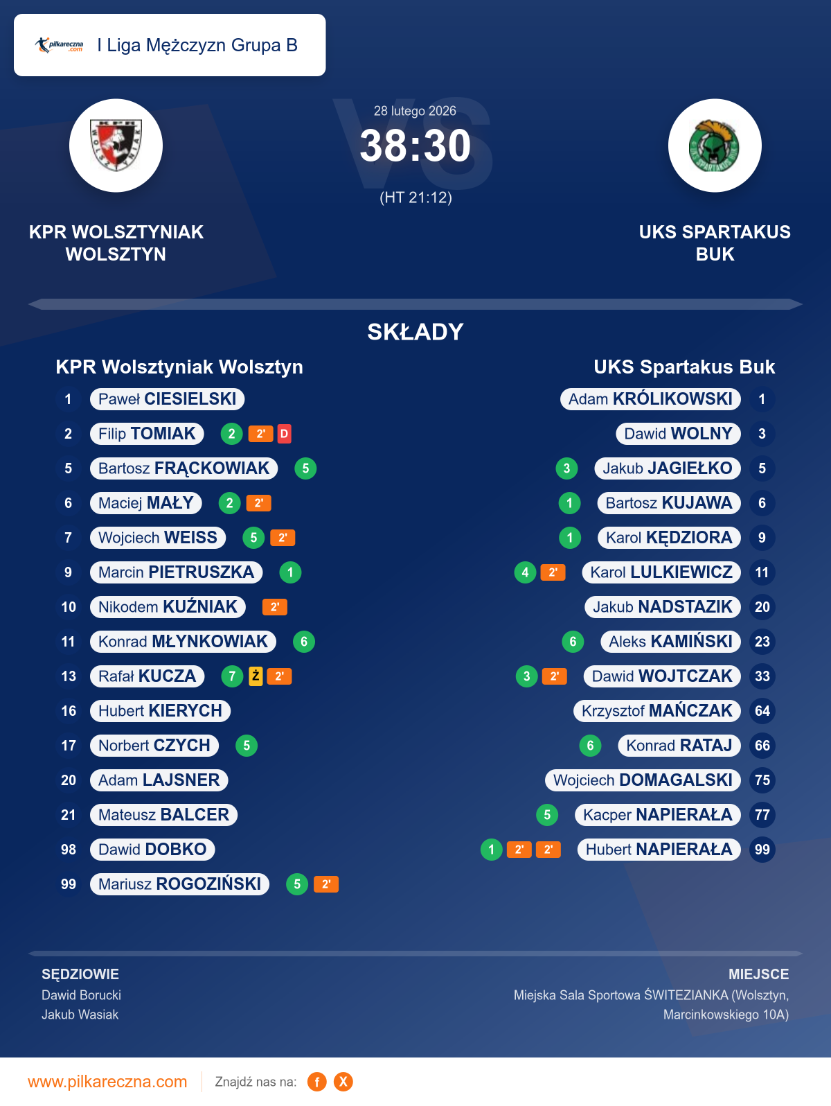 Sędziowali: Dawid Borucki, Jakub Wasiak