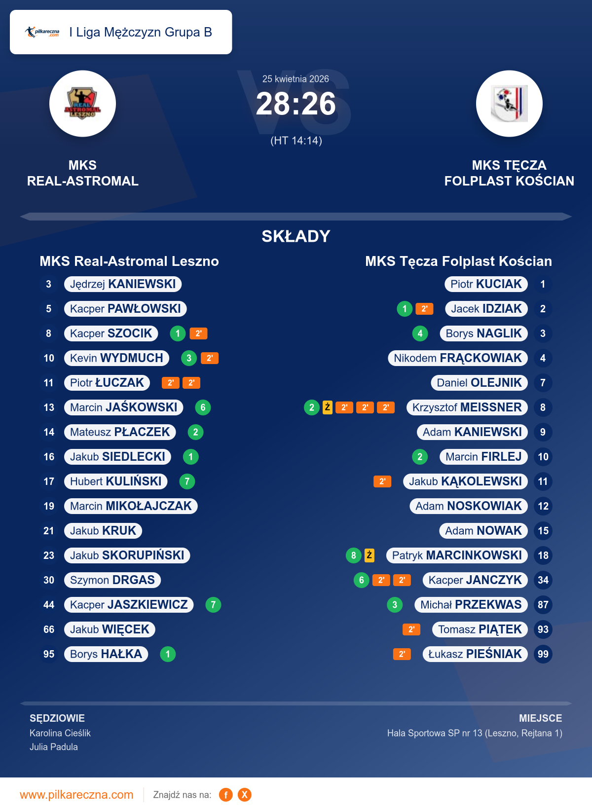 MKS Real-Astromal Leszno 28–26 MKS Tęcza Folplast Kościan