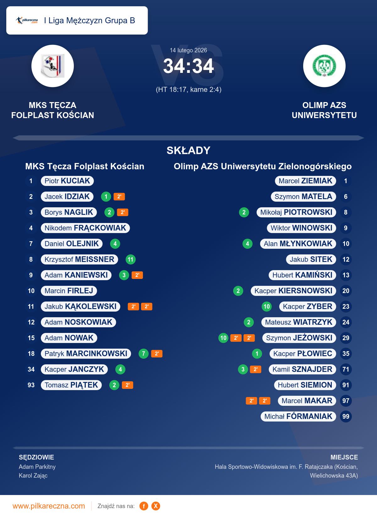 Sędziowali: Adam Parkitny, Karol Zając
