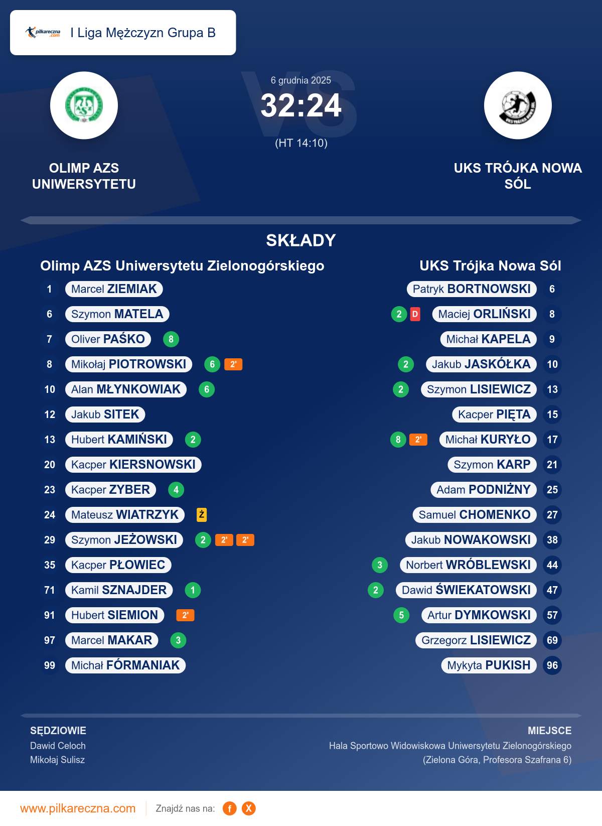 Wynik: 32–24 (HT 14–10)