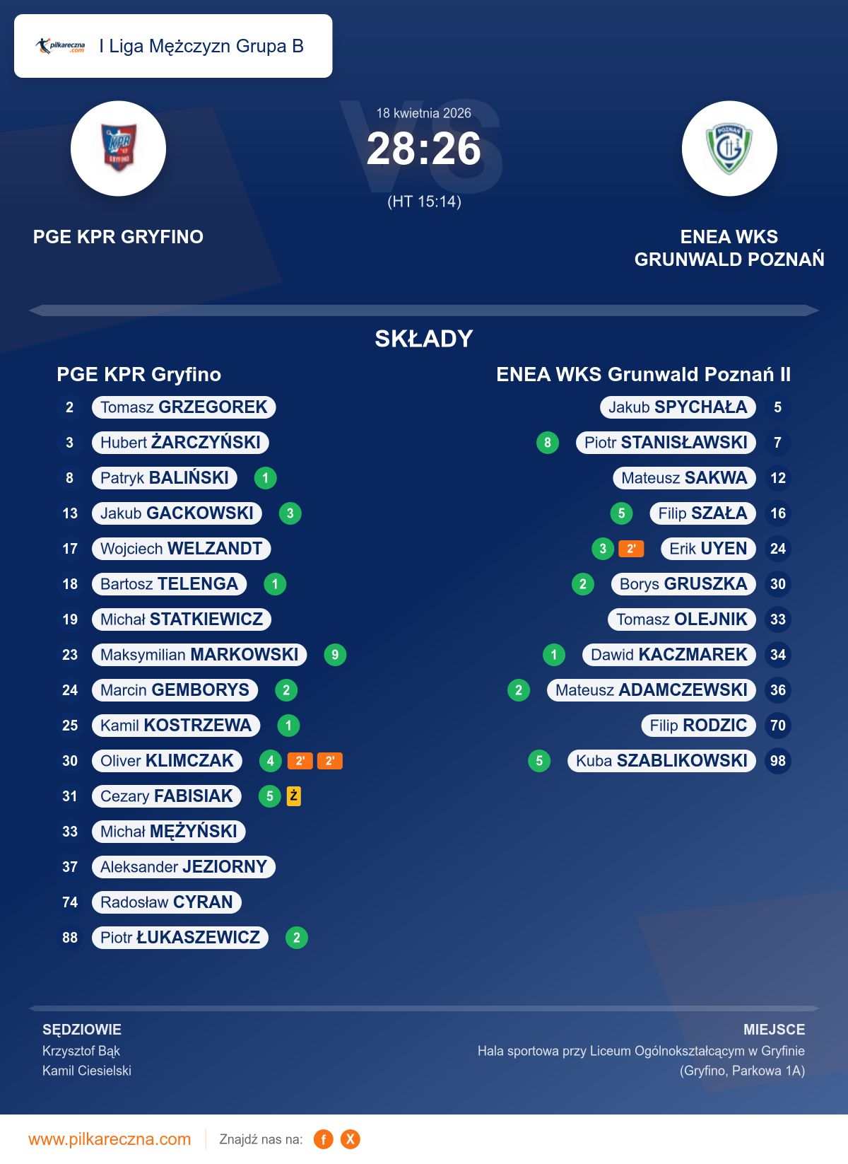 Sędziowali: Krzysztof Bąk, Kamil Ciesielski