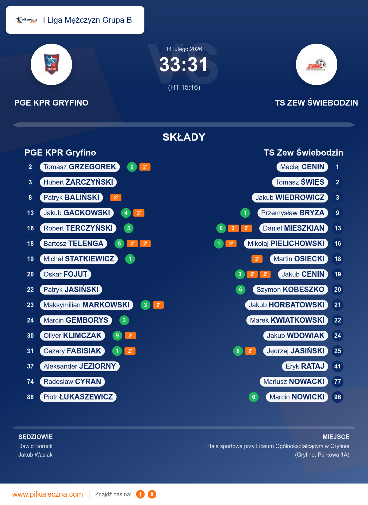 Sędziowali: Dawid Borucki, Jakub Wasiak