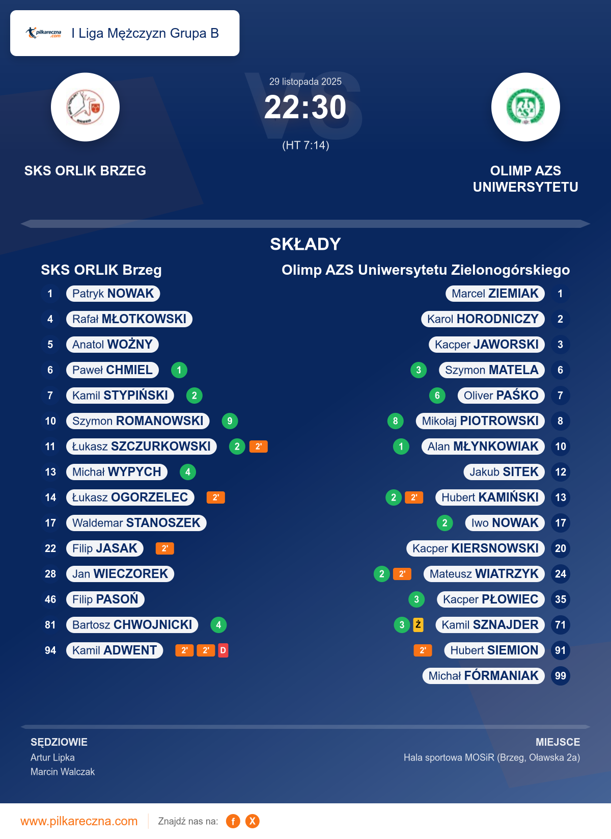 SKS ORLIK Brzeg 22–30 Olimp AZS Uniwersytetu Zielonogórskiego