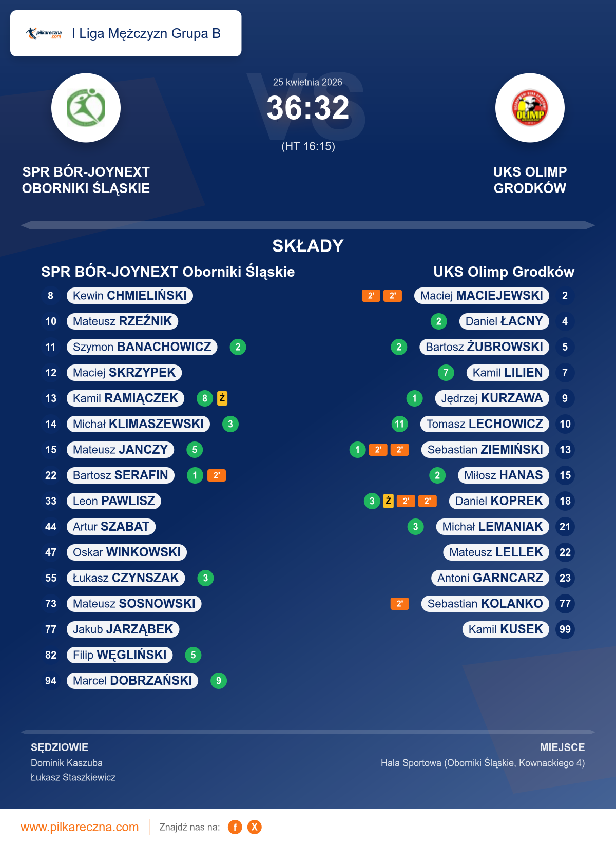 SPR BÓR-JOYNEXT Oborniki Śląskie 36–32 UKS Olimp Grodków