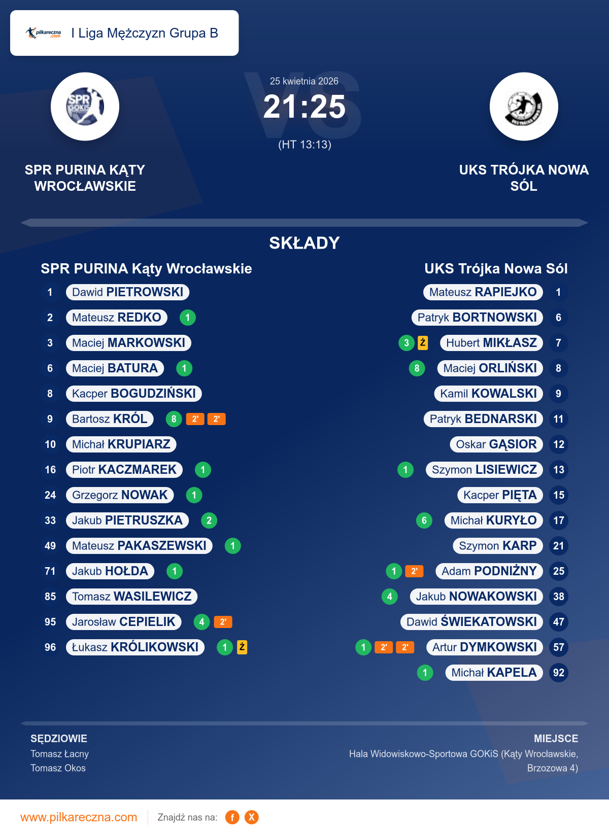Sędziowali: Tomasz Łacny, Tomasz Okos