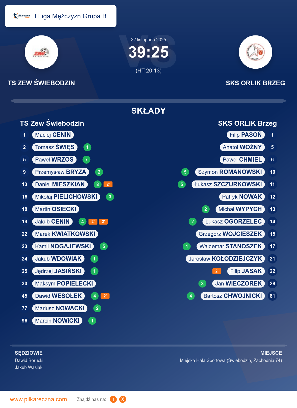 TS Zew Świebodzin 39–25 SKS ORLIK Brzeg